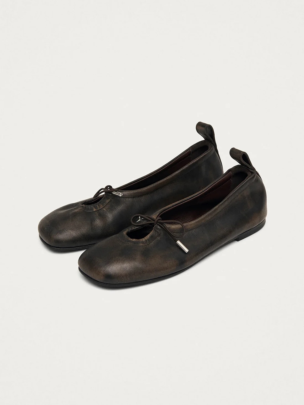 Alohas Rosalind Brushed Brown Leather Ballet Flats