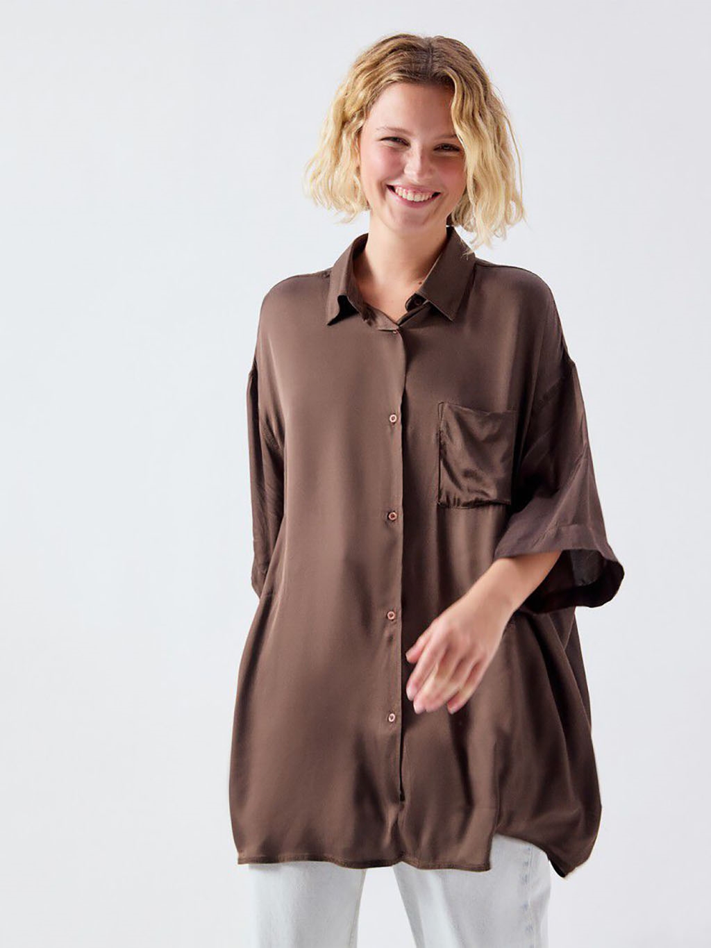 Oplev elegance og komfort med 'American Vintage BOVALOW Shirt Expresso'. Denne dame skjorte er fremstillet af 100% viskose, hvilket giver en utrolig blødhed og letvægtsfølelse. Det løstsiddende design og de korte ærmer tilbyder en afslappet pasform, perfekt til både forår og sommer. Farven 'Expresso' tilføjer en dyb og rig nuance, der nemt kan kombineres med andre beklædningsdele. Bær den åben over en top for et ubesværet stilfuldt look. Ideel til den moderne kvinde, der værdsætter både stil og komfort.