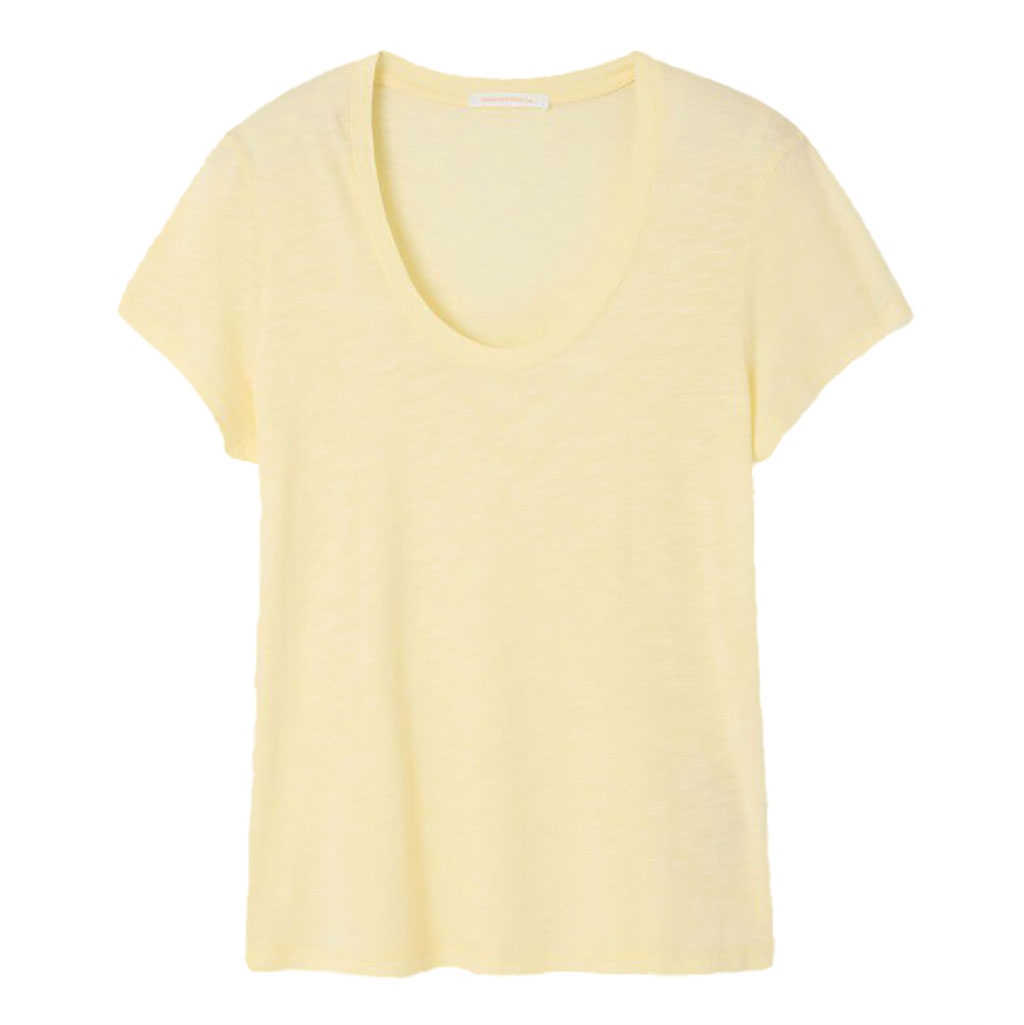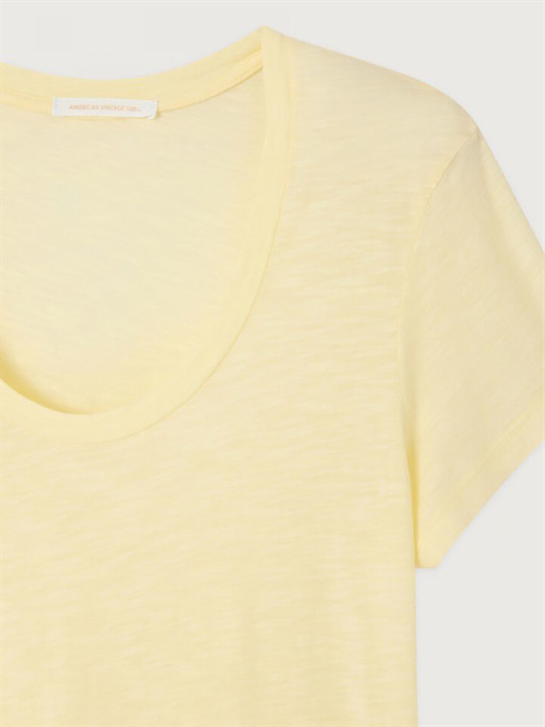 Oplev den ultimative kombination af stil og komfort med 'American Vintage JACKSONVILLE T-Shirt i Vintage Vanilla'. Dette alsidige stykke tøj er perfekt til både efterår/vinter og forår/sommer kollektionerne takket være sit lette og åndbare materiale bestående af 52% bomuld og 48% viskose. Den afslappede pasform og den elegante U-hals sikrer en flatterende silhuet, mens farven Vintage Vanilla tilføjer et tidløst touch til din garderobe. Ideel til enhver lejlighed, denne T-shirt kombinerer mesterligt mode med funktion.