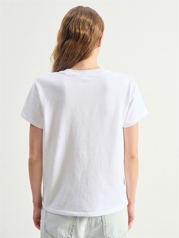 Opgrader din garderobe med den alsidige 'American Vintage YKOBOW T-Shirt' i ren hvid. Designet til at være en tidløs tilføjelse til enhver sæson, denne T-shirt er perfekt til både efterår/vinter og forår/sommer kollektionerne. Den er fremstillet af 100% premium bomuld, hvilket sikrer både komfort og holdbarhed. Med sit regelmæssige fit og klassiske runde halsudskæring tilbyder den en afslappet, men flatterende pasform. Farven hvid tilføjer en frisk og ren følelse til ethvert outfit, hvilket gør denne T-shirt til et must-have i enhver kvindes garderobe.
