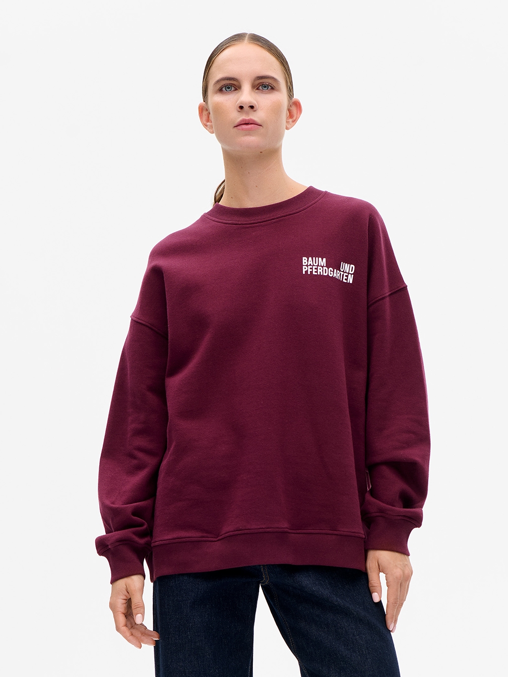 Opdag den ultimative komfort med Baum und Pferdgarten Julle Sweat i farven Port Royale. Denne sweatshirt er designet til den moderne kvinde, med en luksuriøs oversized pasform og sænkede skuldre, der tilbyder afslappet elegance. Fremstillet af 100% økologisk bomuld, sikrer den både bæredygtighed og blødhed. Det ribbede finish ved hals og kanter giver ekstra komfort, mens det ikoniske Baum und Pferdgarten-logo på både bryst og ryg tilføjer et distinktivt præg. Perfekt til både forår/sommer og efterår/vinter kollektionerne. En essentiel tilføjelse til enhver stilbevidst garderobe.