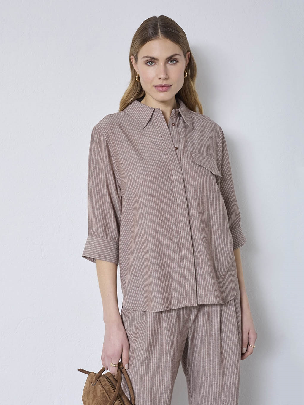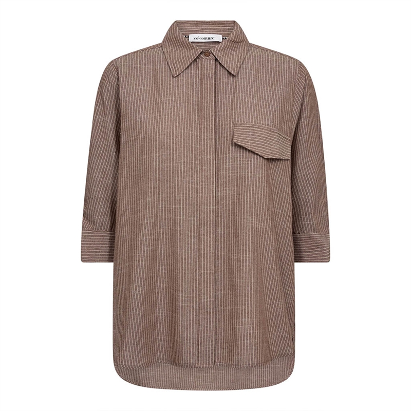 Opgrader din forår/sommer garderobe med 'Co'Couture JihoCC Stripe SS Shirt' i en elegant brun nuance. Denne skjorte er designet til den moderne kvinde, der værdsætter både stil og komfort. Fremstillet af en høj kvalitetsblanding, 65% bomuld og 35% polyester, sikrer den både holdbarhed og åndbarhed. Med sit regulære fit og klassiske striber tilfører denne skjorte et tidløst præg til enhver påklædning. Perfekt til både kontoret og afslappede sammenkomster. Tag fra Co'Couture bekræfter autenticitet og kvalitet.