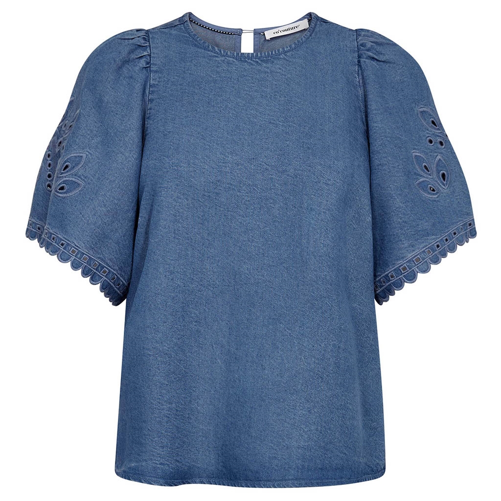 Co'Couture TillyCC Emb SS Blouse Denim Blue