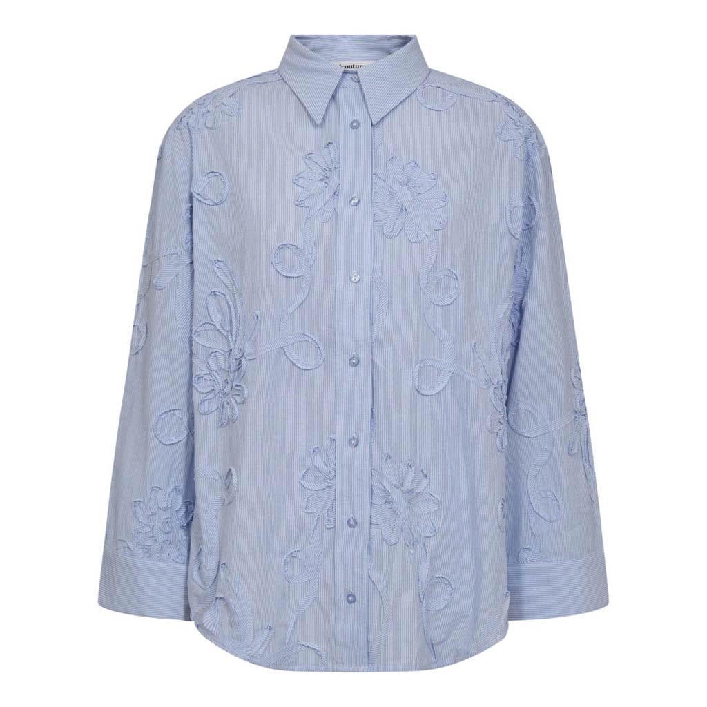 Opdag den elegante 'Co'Couture XavierCC Stripe Flower Shirt' i blegblå, der forener klassisk stil med moderne detaljer. Dette alsidige stykke fra både efterår/vinter og forår/sommer kollektionerne er fremstillet i 100% bomuld, sikrer åndbarhed og komfort hele dagen. Designet med et regelmæssigt fit, er denne skjorte prydet med et subtilt blomstermønster på striber, der tilføjer et feminint touch til enhver garderobe. Perfekt for den stilbevidste kvinde, der værdsætter kvalitet og tidløs design.