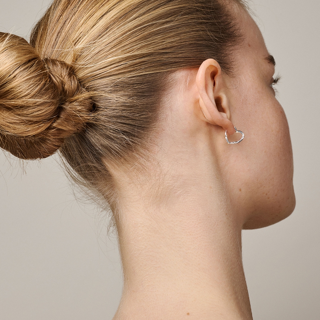 Opdag elegance og unik design med 'Enamel Copenhagen Organic Heart Small Hoops Silver'. Disse delikate sølvøreringe, formet som hjerter, kombinerer minimalistisk stil med sofistikeret håndværk. Det håndlavede hjerteoverflade tilføjer en eksklusiv følelse, mens det diskrete design fra fronten afslører sin hjerteform i profilvisning. Perfekte som en betænksom gave til en du elsker, eller som en tilføjelse til din egen smykkesamling. Øreringene er fremstillet af Enamel Copenhagen, kendt for deres kvalitet og æstetik.