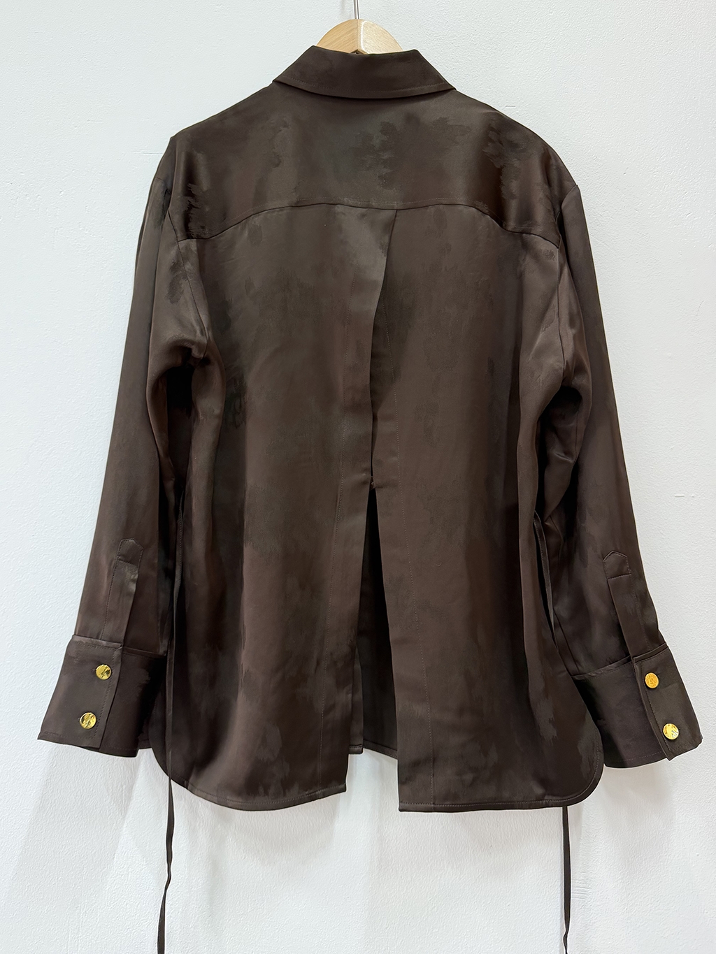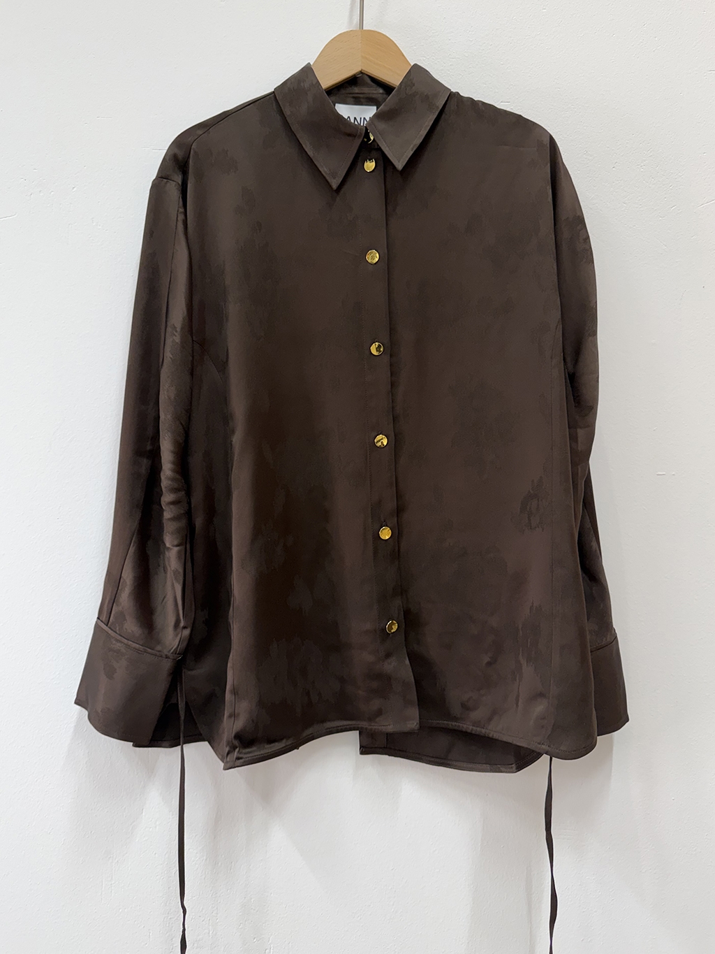 Ganni Fluid Satin Jacquard Long Sleeve Shirt DemitasseGanni Fluid Satin Jacquard Long Sleeve Shirt Demitasse