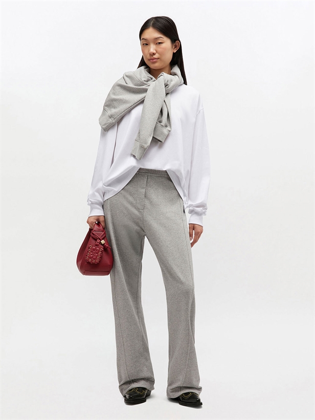 Opgrader din afslappede garderobe med Ganni Isoli Sweatpant Paloma. Disse stilfulde joggingbukser er fremstillet af 100% økologisk bomuld, hvilket sikrer en bæredygtig og ansvarlig tilgang til mode. Designet med en behagelig elastik i taljen og en snydegylp, kombinerer de komfort med et moderne udtryk. Med et diskret GANNI-logo tilføjes et touch af brand-identitet. Perfekte til både forår/sommer og efterår/vinter kollektionerne, tilbyder de en afslappet pasform, der passer til enhver lejlighed. Farven 'Paloma' tilføjer en alsidig grå nuance til din garderobe.