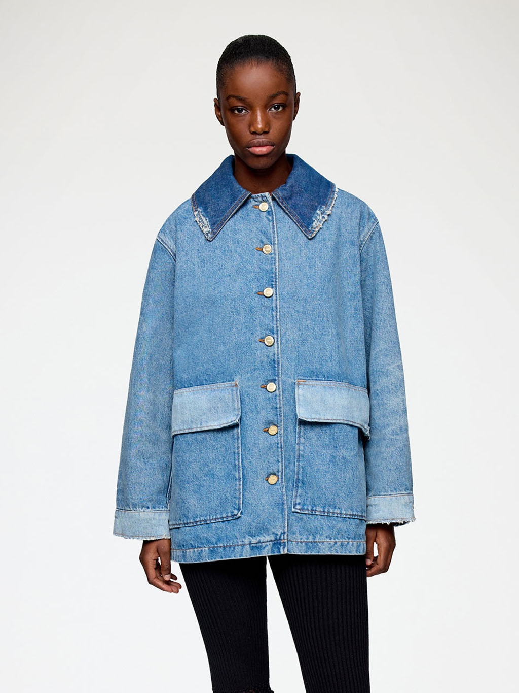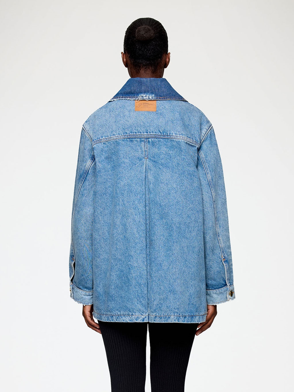 Ganni Patchwork Denim Midi Jacket Mid Blue Vintage