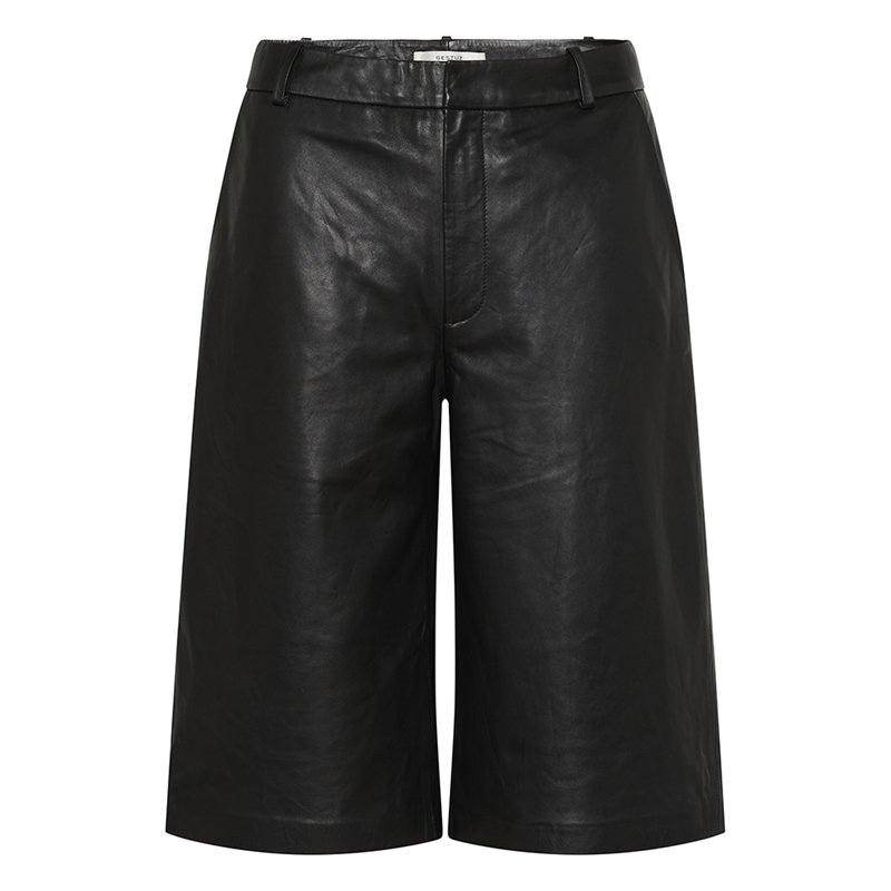 Opdag elegance og komfort med Gestuz GZallis MW shorts i sort. Disse stilrene læderbermuda-shorts er fremstillet af 100% blødt lammelæder og tilbyder en afslappet pasform med knælængde, der sikrer alsidighed og komfort. Med en struktureret linning og et vidt ben, er disse shorts ideelle til både hverdagsbrug og mere stilfulde sammenhænge. Perfekt til forårs- og sommerkollektionen, vil de tilføje et touch af raffinement til enhver garderobe.