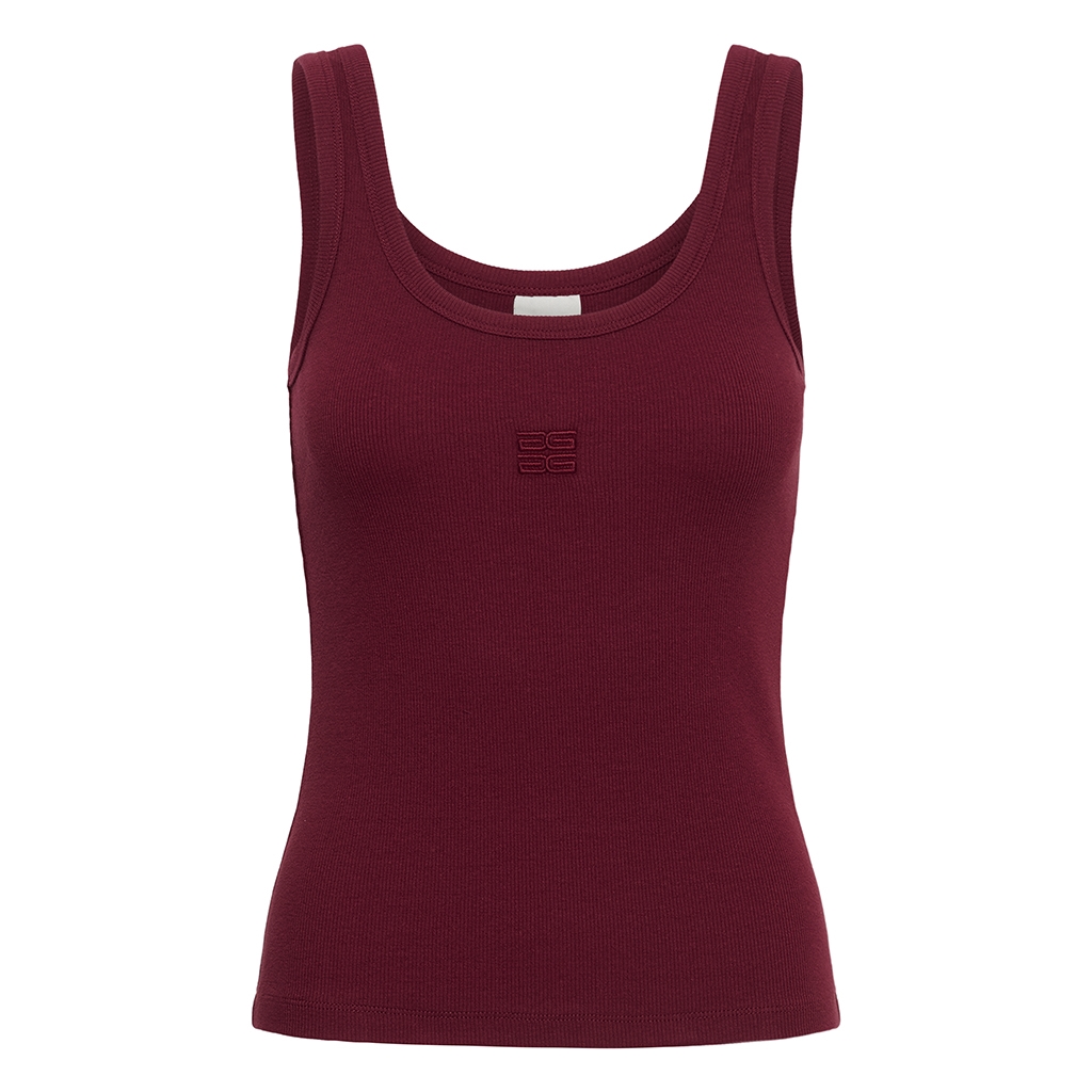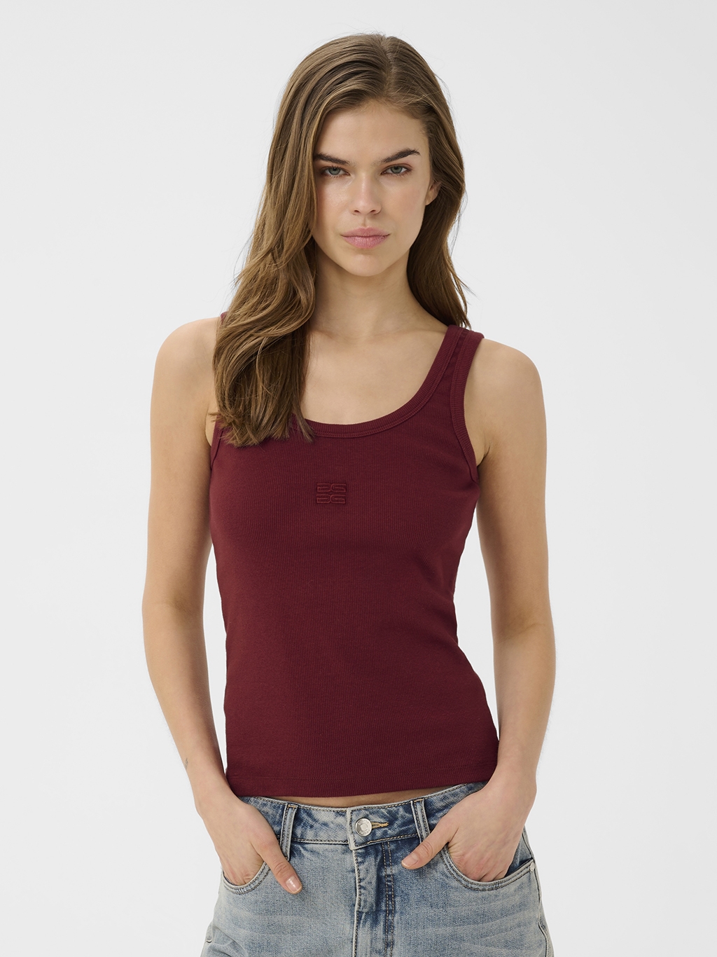Opgrader din garderobe med Gestuz GZdrew logo top 2.0 i farven Cabernet. Denne elegante, ribstrikkede tanktop fremhæver din figur med sin tætsiddende slim fit pasform og korte længde. Designet med en dyb rund halsudskæring og diskrete teksturerede detaljer på brystet, kombinerer den komfort og stil. Fremstillet af en høj kvalitet blanding af 94% bomuld og 6% elastan, tilbyder denne top både fleksibilitet og holdbarhed. Perfekt til forårs- og sommerdage. Farve: Cabernet. Uden ærmer, ideel til både casual og mere opdressede anledninger.