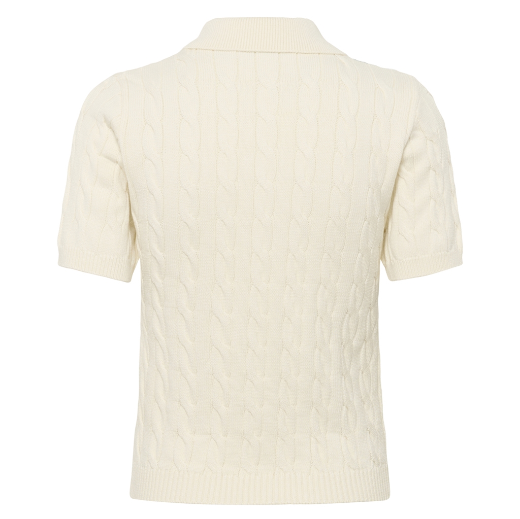 Opdag elegance og komfort med Gestuz GZthilla polo pullover i Egret. Denne stilfulde damestrik kombinerer et klassisk polo-design med moderne detaljer. Fremstillet af en blød blanding af 72% viskose og 28% polyester, tilbyder den en behagelig regular fit pasform med korte ærmer og en smart krave med knaplukning. Det karakteristiske kabelstrik mønster fuldender looket, der er ideelt til både forårs- og sommergarderoben. Farven Egret tilføjer en lys og frisk nuance til enhver outfit.