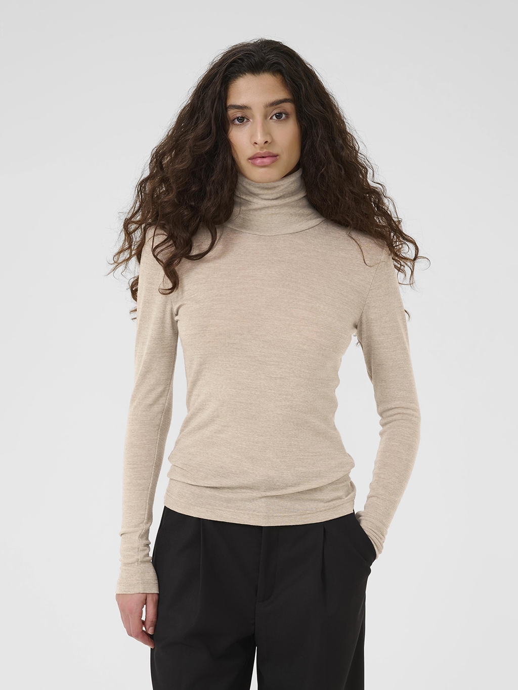 Opdag luksus og varme med 'Gestuz NiniaGZ wool rollneck Sand Melange'. Denne elegante rullekravetrøje er fremstillet af 100% uld, hvilket sikrer en blød og behagelig oplevelse. Farven 'Sand Melange' tilføjer et raffineret touch til enhver efterår og vintergarderobe. Designet med en regular fit, er denne trøje både stilfuld og praktisk, ideel til både kontoret og afslappede sammenkomster. Materialet er fint strik, der tilbyder både varme og åndbarhed. Perfekt for den modebevidste kvinde, der værdsætter kvalitet og komfort.