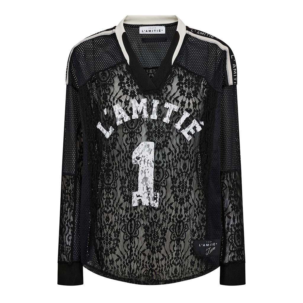 Opdag elegance og komfort med 'Haute L'Amitié Lace Football V-Blouse' i sort. Denne top er designet til forårs- og sommerkollektionen og er fremstillet af 100% polyester, der sikrer holdbarhed og let pleje. Den afslappede pasform kombinerer stil og komfort, mens det delikate blondestof tilføjer et touch af finesse til dit hverdagslook. Ideel til både kontor og fritid. Klæd den op med smarte bukser eller ned med jeans for en ubesværet chic stil.