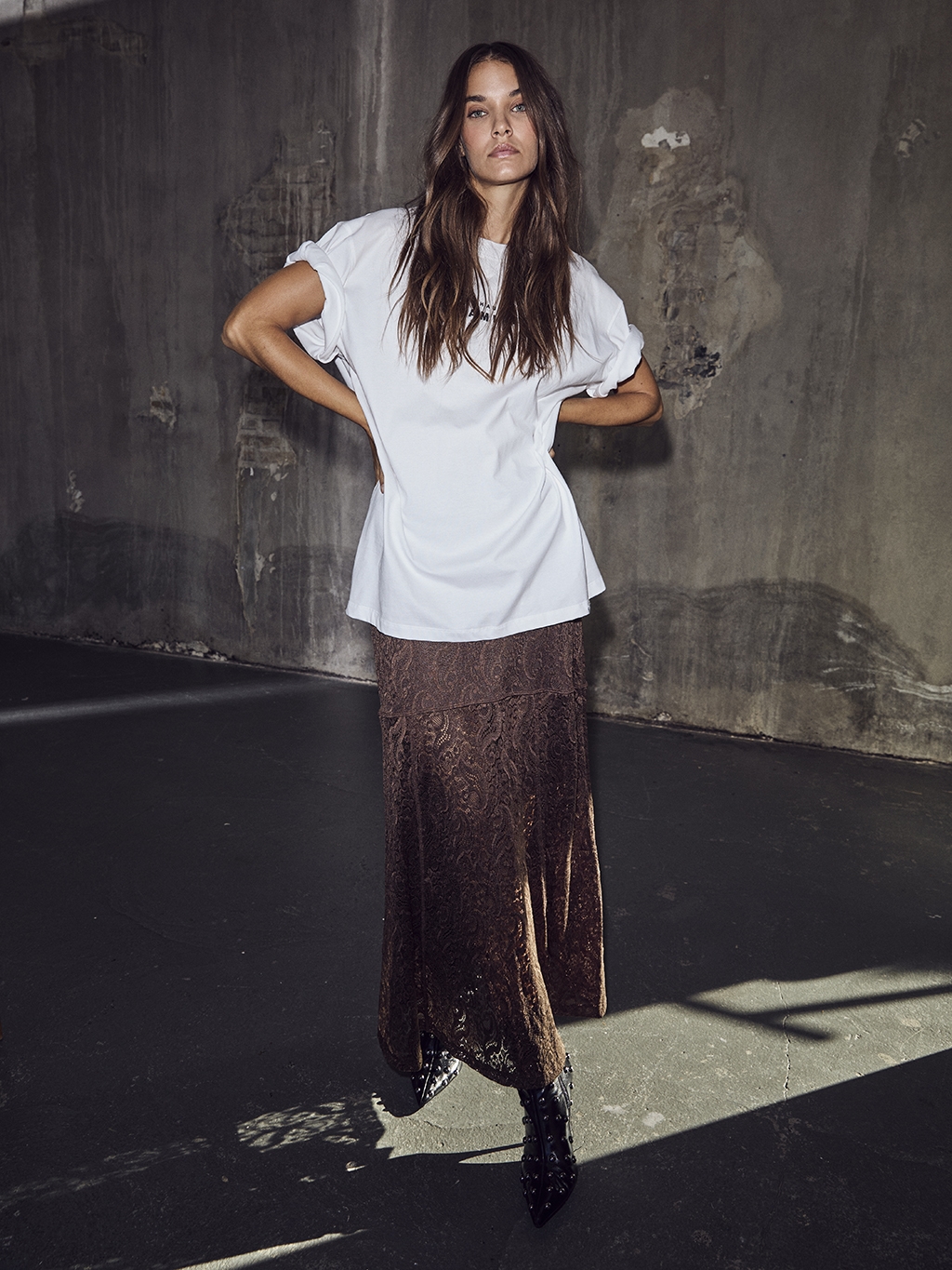 Ofte stillede spørgsmål om Haute L\'Amitié Summer Lace Skirt Mocca