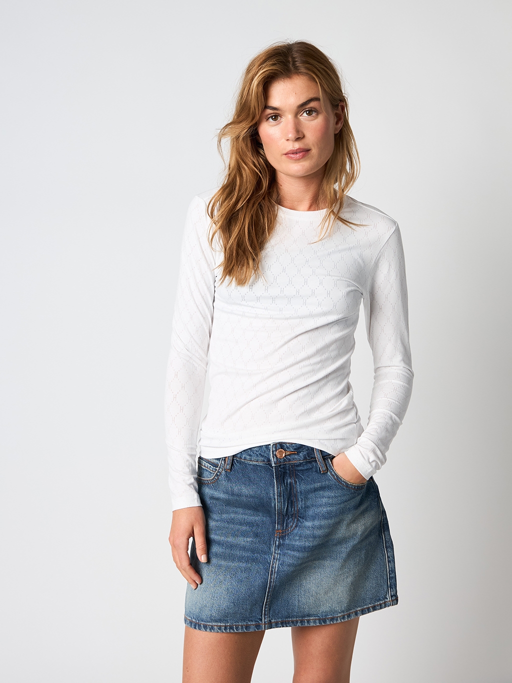 Opgrader din garderobe med 'Hype The Detail Tee L/S H-Logo White' – en essentiel langærmet T-shirt, der kombinerer stil og komfort. Designet til forårs- og sommerkollektionen, denne slim fit T-shirt er fremstillet af en højkvalitetsblanding på 60% bomuld, 35% polyester og 5% elastan, hvilket sikrer både holdbarhed og fleksibilitet. Den hvide farve fremhæver det elegante H-logo, som tilføjer et moderne præg. Perfekt for den modebevidste kvinde, der værdsætter detaljer og kvalitet i hverdagens påklædning.