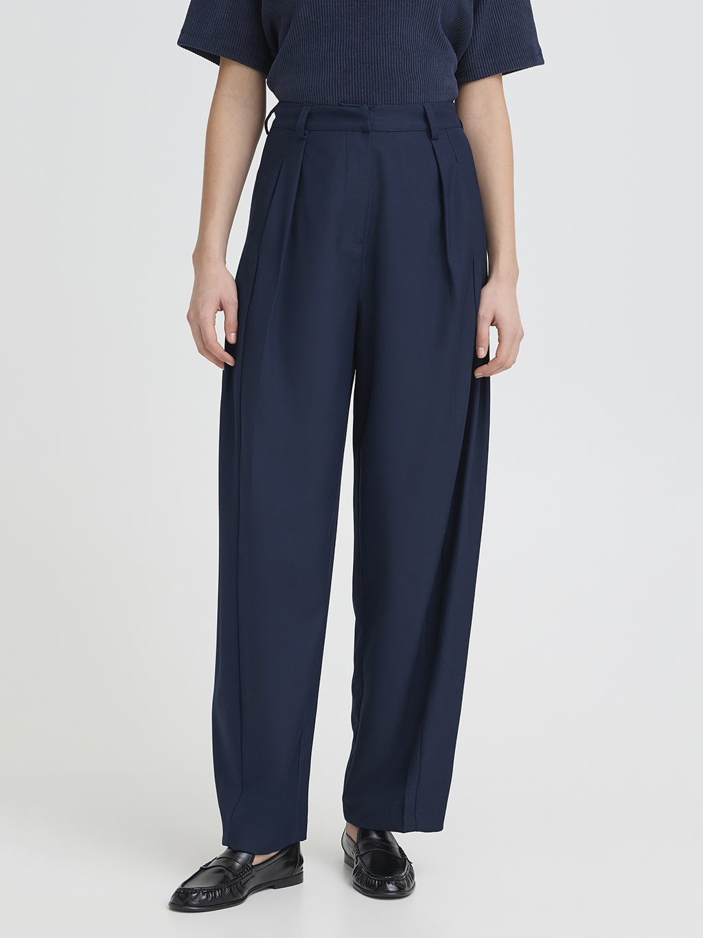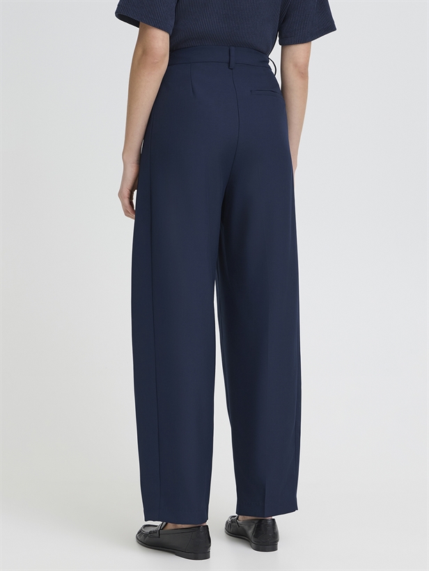 Opdag elegance og komfort med Ichi IhErina Bukser i mørkeblå. Disse alsidige bukser er designet til den moderne kvinde og er perfekte for både efterårs/vinter- og forårs/sommerkollektionerne. Fremstillet af en høj kvalitet blanding af 95% polyester og 5% elastan, sikrer de optimal komfort og holdbarhed. Den regulære pasform og den stilfulde mørkeblå farve gør dem til et uundværligt stykke i enhver garderobe. Uanset anledningen, vil IhErina bukserne fra Ichi tilføje et touch af raffinement til dit outfit.