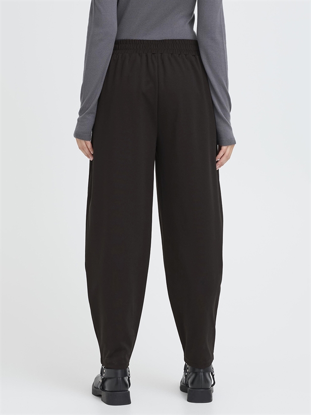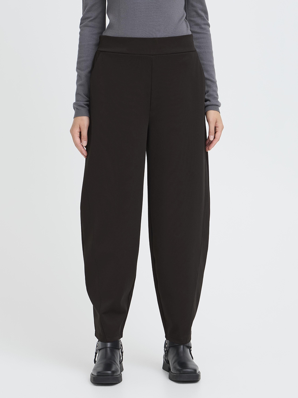 Opdag elegance og komfort med 'Ichi IhKate Barrel Pants Black'. Disse stilfulde bukser er designet specielt til den moderne kvinde, der værdsætter både funktionalitet og mode. Fremstillet af en førsteklasses blanding af 74% polyester, 22% viskose og 4% elastan, tilbyder de både holdbarhed og stræk, hvilket sikrer en perfekt regular fit. Farven sort tilføjer en klassisk og alsidig touch, ideel til både kontor og fritid. En essentiel del af enhver efterår/vinter garderobe. Vælg 'Ichi IhKate Barrel Pants Black' for en ubesværet chic stil.