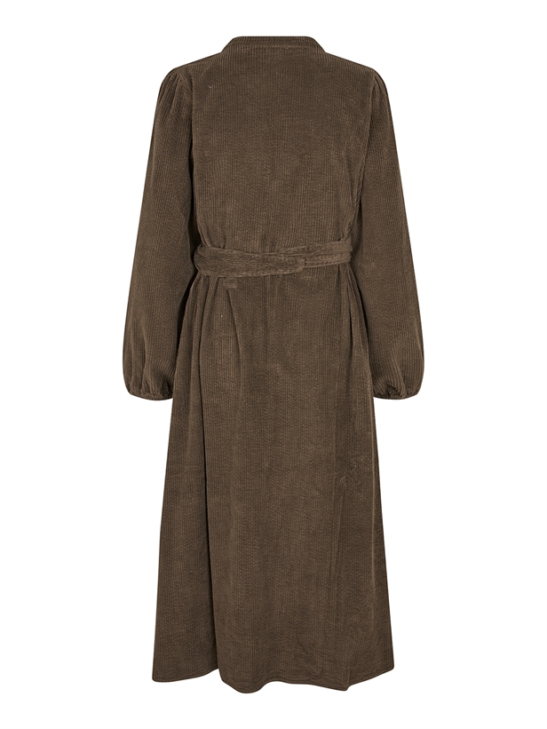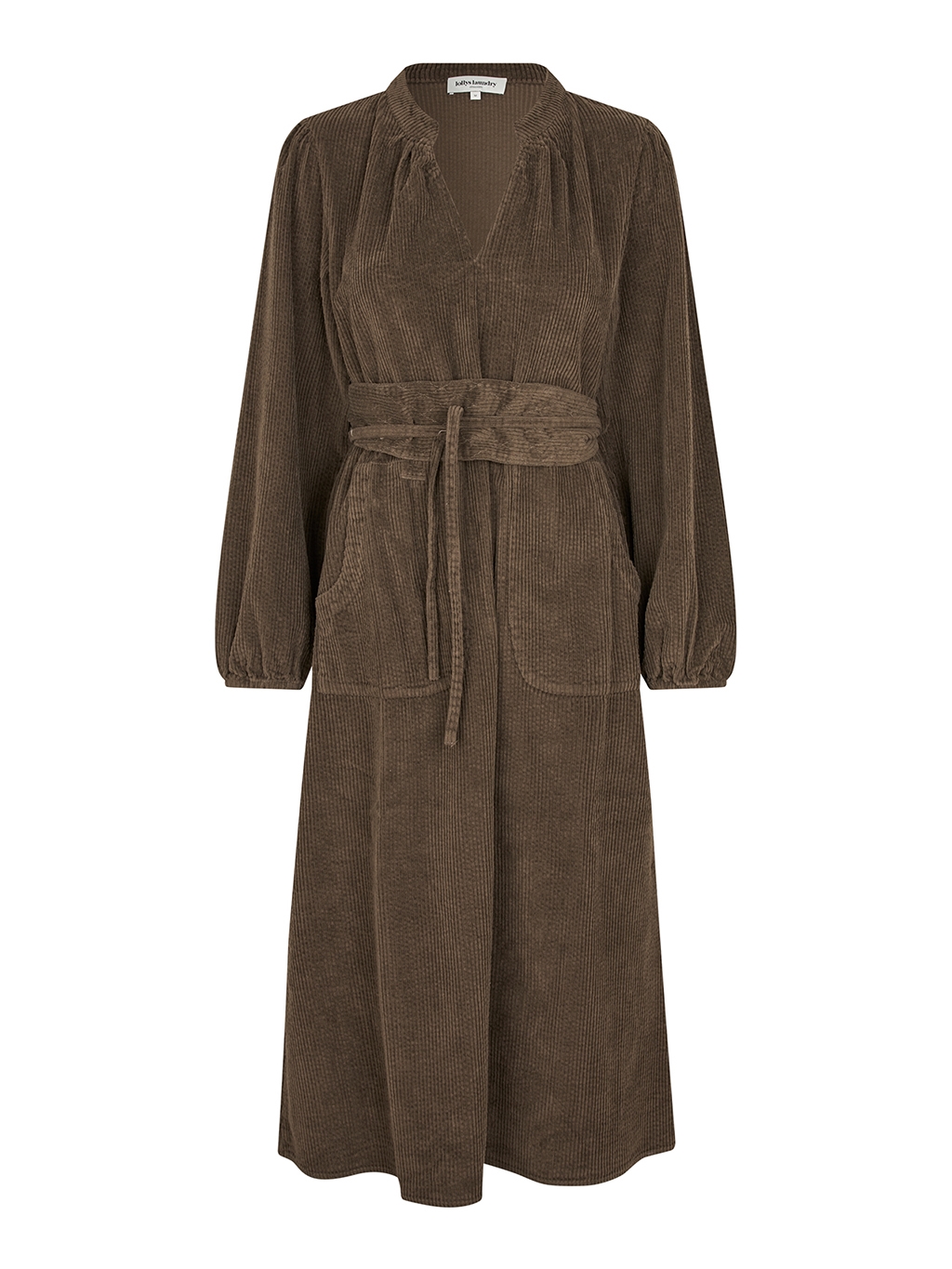 Opdag elegance og komfort med 'Lollys Laundry ParisLL Midi Dress LS' i farven Dark Mokka. Denne kjole er en del af efterår/vinter kollektionen og fremstår i en fløjlsblød finish, der tilføjer et luksuriøst touch til din garderobe. Med sit Regular fit design sikrer den en flatterende pasform for enhver figur. Materialets kvalitet og kjolens tidløse snit gør den ideel til både hverdagsbrug og særlige lejligheder. Farven brun tilfører varme og dybde, perfekt til sæsonens trends. Gør din stil sofistikeret med denne must-have midi kjole fra Lollys Laundry.