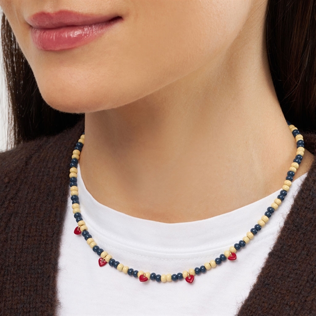 Materialer: 18K forgyldt messing, 50% genanvendt materiale, emalje, håndmalede perler og hjerter.