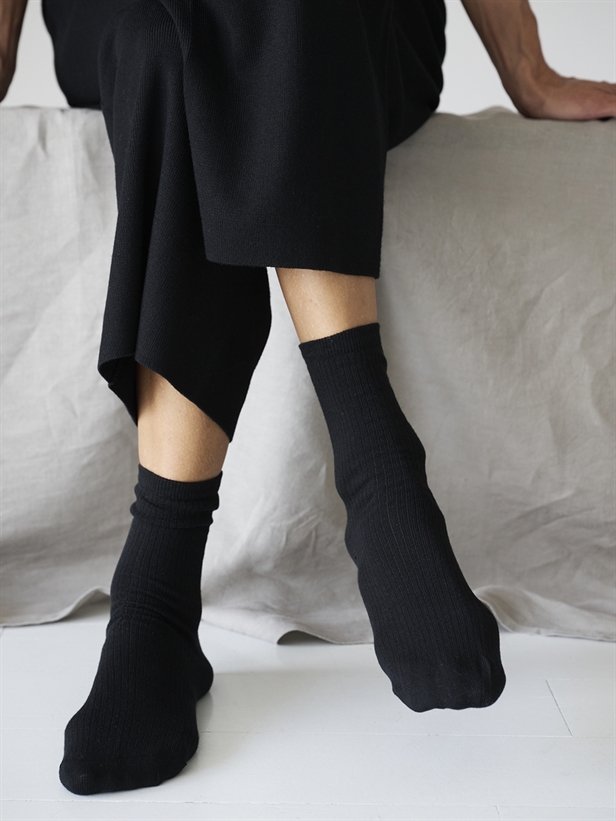 Oplev den ultimative blanding af stil og komfort med Moshi Moshi Mind Story Rib Socks i sort. Disse mellem-lange ribbede sokker er fremstillet af 98% økologisk bomuld og 2% elastan, hvilket sikrer både fleksibilitet og blødhed. Perfekte til enhver skotype, fra sneakers til støvler og stiletter. Sokkerne er en del af Moshi Moshi Minds Efterår/Vinter kollektion og er fremstillet med ansvarlige, bæredygtige materialer. Vælg disse sokker for både mode og miljøbevidsthed.