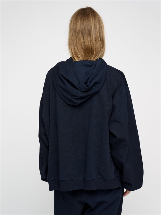 Opdag den elegante og bæredygtige Moshi Moshi Mind Cosmos Hoodie i farven Dark Navy. Denne langærmede bluse er fremstillet af 100% økologisk bomuld, hvilket sikrer en blød og behagelig oplevelse. Designet med brede ærmer, justerbare snører og dekorative slidser i siderne, tilbyder denne hoodie en afslappet pasform, der er ideel til både hverdagsbrug og blød bevægelse. Perfekt til efterår/vinter kollektionen. Vælg ansvarligt og tilføj denne tidløse og økologiske hoodie til din garderobe.