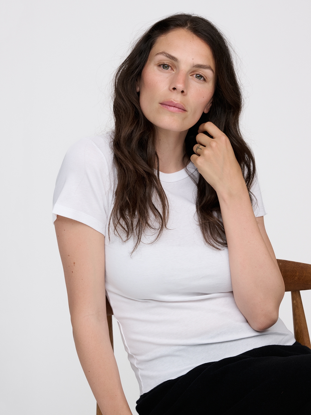 Oplev den ultimative kombination af stil og bæredygtighed med Moshi Moshi Mind Love Tee i hvid. Denne klassiske t-shirt er fremstillet i 100% økologisk bomuld, hvilket sikrer både miljøvenlighed og blød komfort. Med sin slanke pasform og rene linjer fremhæver denne tee din figur elegant, mens den runde halsudskæring tilføjer et tidløst touch. Perfekt til både forår og sommer, denne t-shirt kombinerer ansvarlighed med moderne æstetik.