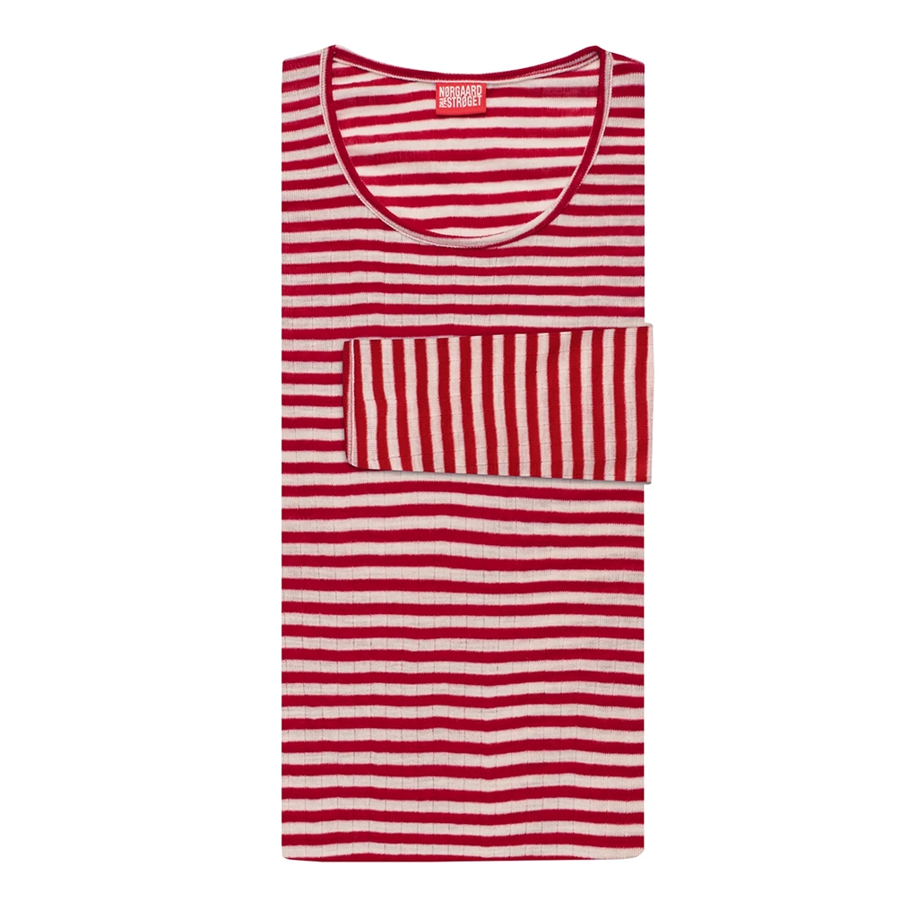Opdag elegance og komfort med Nørgaard På Strøgets '101 Wool' sweater i farven rød/ecru. Denne yndefulde trøje er fremstillet af 100% merinould, kendt for sin blødhed, varme og åndbarhed, hvilket gør den ideel til efterår og vinter. Dens regelmæssige pasform sikrer en flatterende og behagelig silhuet. Med denne klassiske og tidløse tilføjelse til din garderobe kan du både se godt ud og føle dig godt tilpas. Invester i bæredygtig luksus og kvalitet med Nørgaard På Strøgets eksklusive ulddesigns.