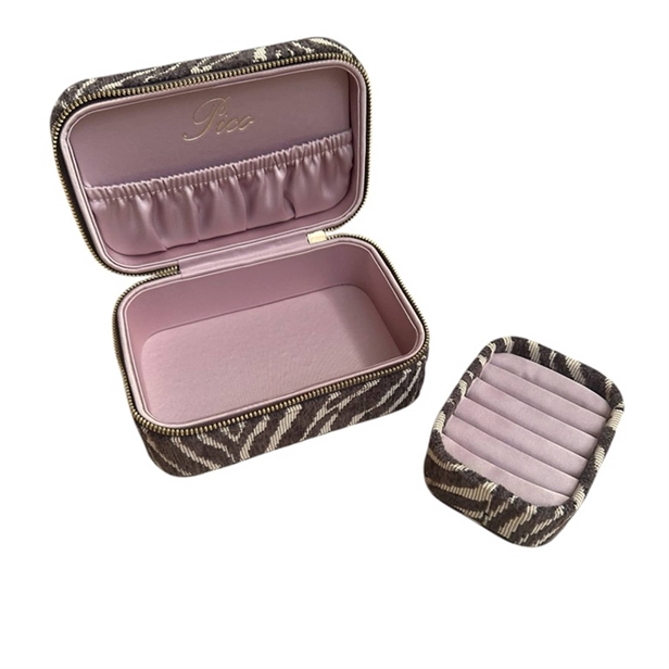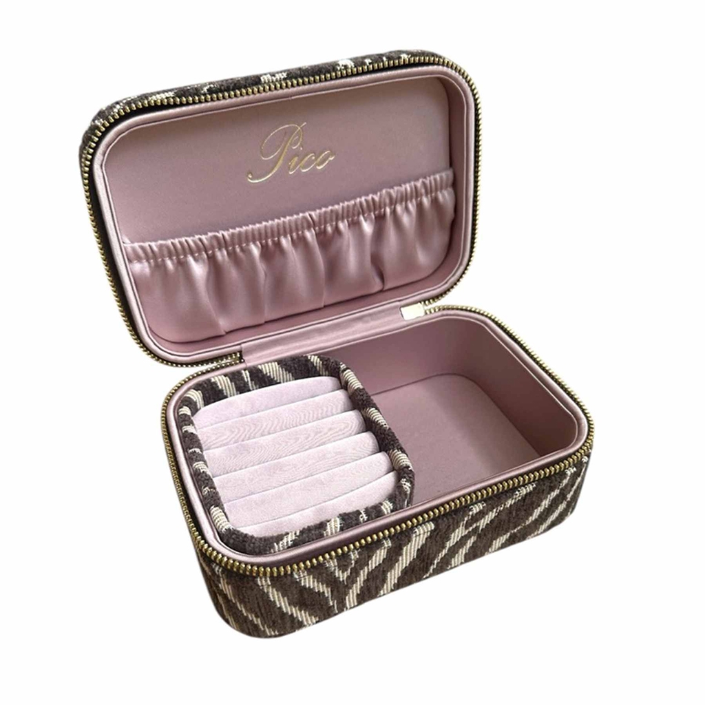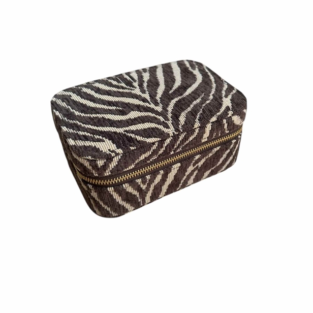 Opbevar dine småskatte med stil i 'Pico Copenhagen Large Trinket Box Brown Zebra'. Denne elegante opbevaringsboks er designet af Pico og kombinerer funktionalitet med et iøjnefaldende brown zebra mønster. Fremstillet af en holdbar blanding af bomuld og polyester, sikrer denne trinket box, at dine værdigenstande opbevares sikkert og med flair. Med dimensioner på 14,5x10 cm, tilbyder den rigelig plads til smykker, nøgler eller andre småting. Perfekt til den moderne kvinde, der værdsætter både æstetik og praktisk design.