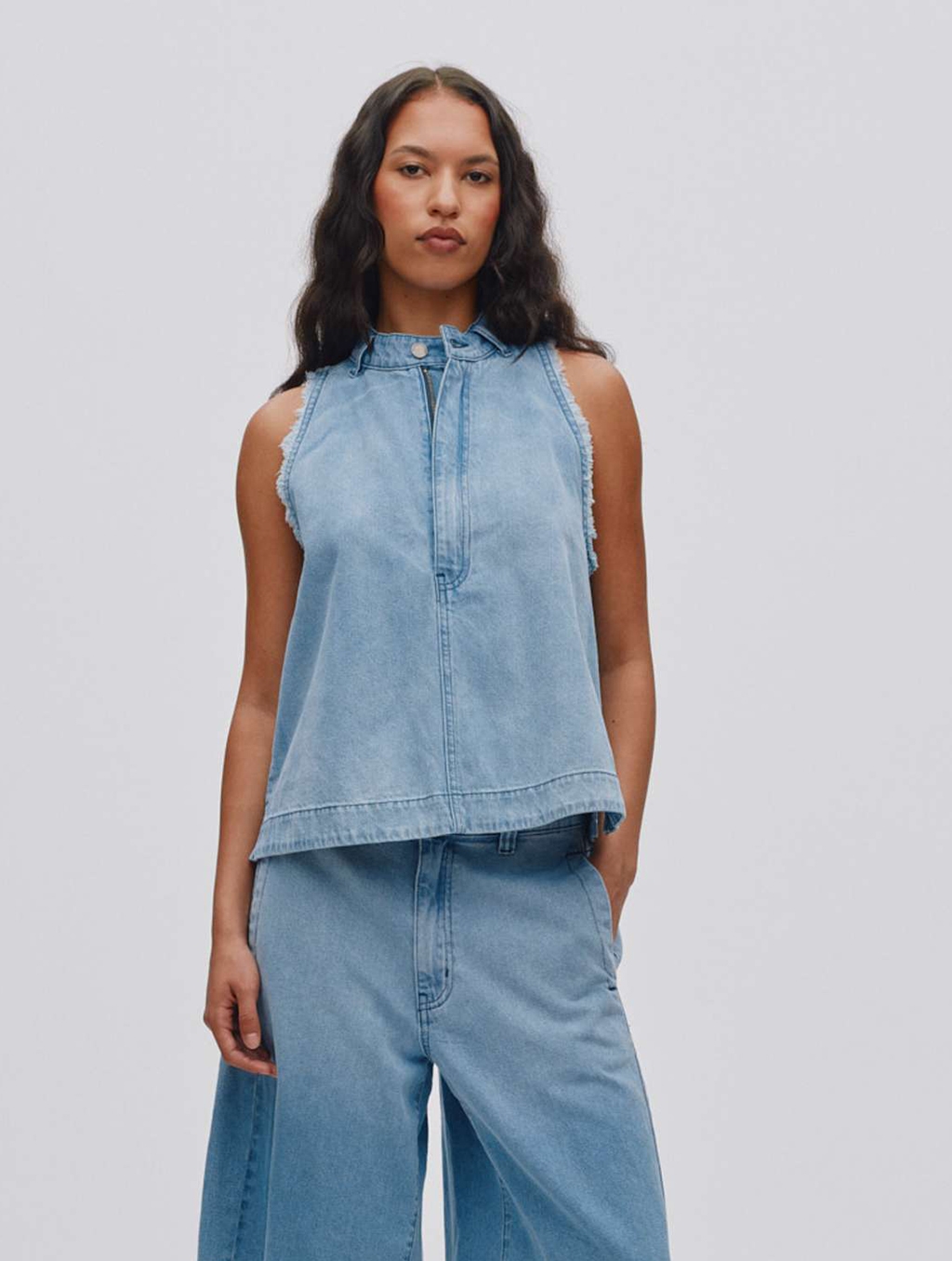 Rabens Saloner Faya Light denim halter top Light washed Denim