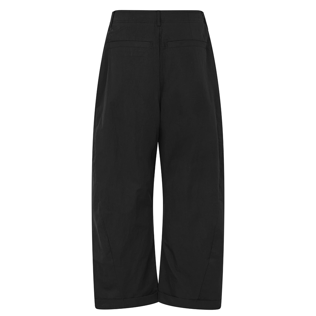 Oplev den ultimative fusion af stil og komfort med Rabens Saloner Thalia Light Fusion Pants i farven Caviar Black. Disse elegante bukser er fremstillet i en premium blanding af 64% bomuld og 36% polyamid, hvilket sikrer både holdbarhed og blødhed. Designet med et rent og minimalistisk look, har de en regulær pasform med lige ben og manchetterede kanter, der tilføjer et raffineret touch. Udstyret med praktiske elementer som lynlås, knaplukning, side- og baglommer samt bæltestropper, er de ideelle til både hverdagsbrug og særlige anledninger.