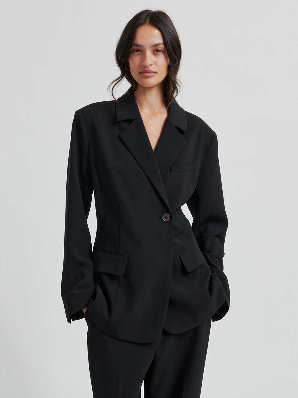Opgrader din garderobe med den elegante 'Second Female Fique Fitted Blazer' i klassisk sort. Denne blazer er designet i en flatterende slim fit og fremstillet af 62% polyester, 30% genbrugt polyester og 8% elasthan, hvilket sikrer både komfort og miljøansvarlighed. Med sin tidløse farve og alsidige design er blazeren perfekt til både professionelle møder og sociale arrangementer efter arbejde. Tilføj et touch af bæredygtig chic til din stil denne sæson med denne must-have fra Second Female's efterår/vinter kollektion.