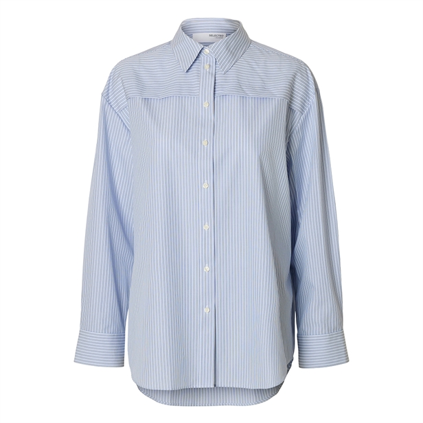 Opdag den elegante og komfortable 'Selected Femme SlfAllison Oversize LS Skjorte' i Cashmere Blue. Denne skjorte, fremstillet af 100% bomuld, sikrer bæredygtighed og blød komfort hele dagen. Med en karakteristisk skjortekrave, lange ærmer og praktiske knapmanchetter, kombinerer den klassisk design med en moderne, oversized pasform. Perfekt for enhver efterår/vinter garderobe, skjortens knaplukning fortil tilføjer et tidløst touch. Vælg denne skjorte for en balance mellem stil og afslappet luksus i din hverdagsbeklædning.