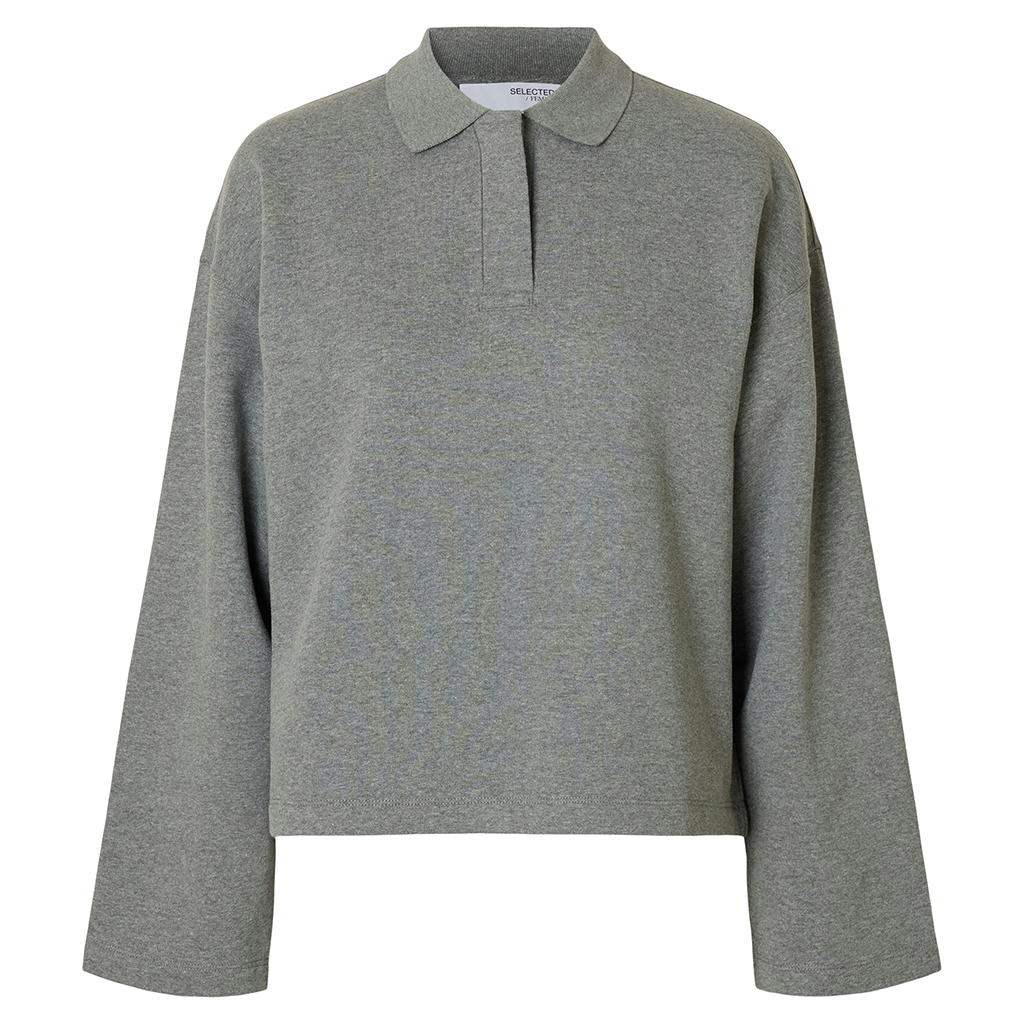 Selected Femme SlfAri Gia LS Polo Sweat Medium Grey Melange