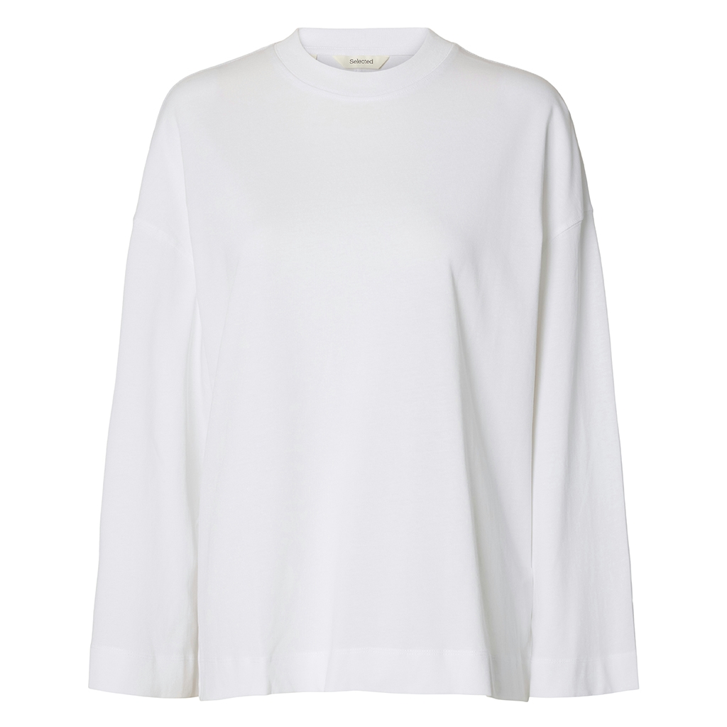 Opdag den stilfulde og bæredygtige 'Selected Femme SlfColwoman LS Oversized Tee' i Bright White. Fremstillet af 100% økologisk bomuld, garanterer denne top både komfort og miljøansvarlighed. Med en løs pasform, rund hals og lange ærmer, er den ideel til både forår/sommer og efterår/vinter kollektionerne. Denne alsidige tee er perfekt for den moderne kvinde, der værdsætter kvalitet og bæredygtighed i hverdagens garderobe. Vælg en top, der ikke kun ser godt ud, men også støtter ansvarlige materialer.< br />