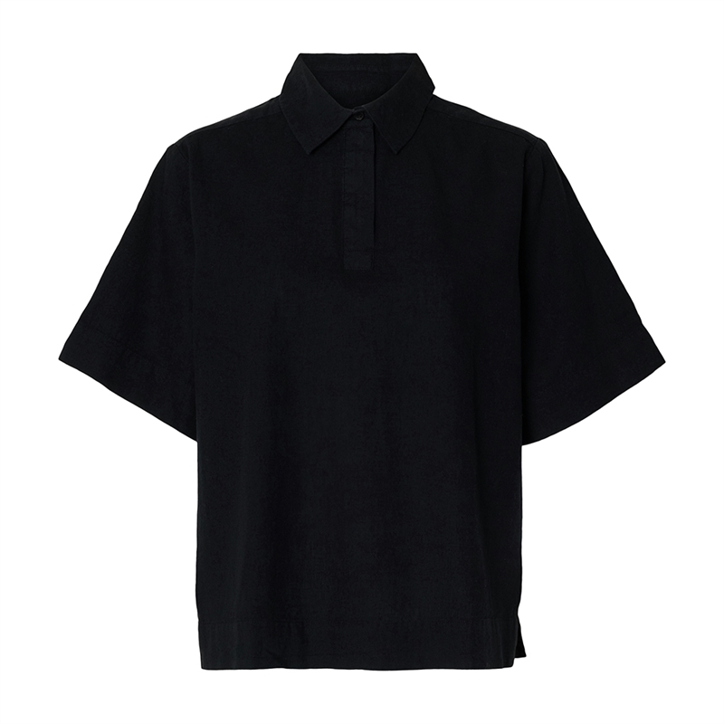Selected Femme SlfLuisa Linen Blend Polo Black