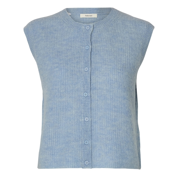 Opgrader din garderobe med Selected Femme SlfLulu SL Button O-Neck Vest i Cashmere Blue. Denne elegante strikkede vest er fremstillet af en blød blanding af 39% uld, 24% polyester, 20% alpaka, 15% nylon og 2% elastan, hvilket sikrer både komfort og holdbarhed. Vesten har en klassisk rund halsudskæring, ærmeløst design og praktisk knaplukning. De ribbede manchetter tilføjer en raffineret detalje. Perfekt for både efterår/vinter og forår/sommer kollektionerne. En alsidig tilføjelse til enhver stilbevidst kvindes garderobe.