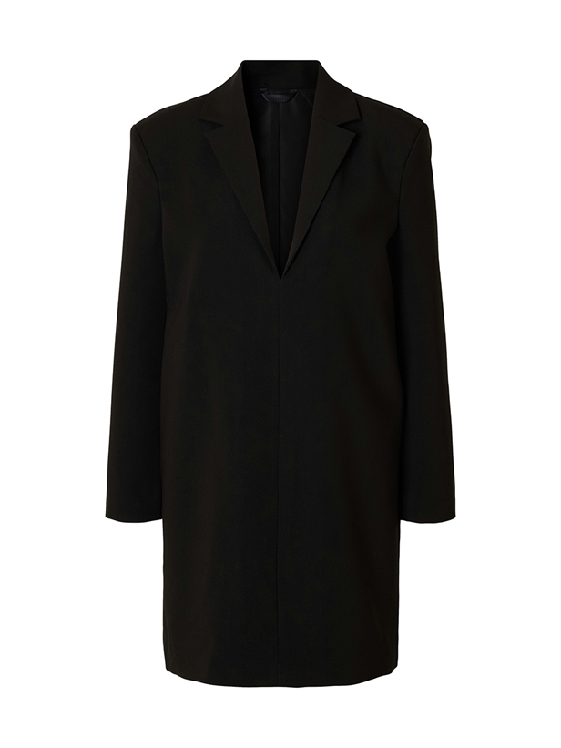 Opdag elegance og komfort med 'Selected Femme SlfSylvie Relaxed LS Short Dress Black'. Denne kjole kombinerer mørke og mystik med en afslappet pasform og smarte detaljer som V-hals og lange ærmer. Fremstillet af 78% genbrugt polyester, 20% viskose og 2% elastan, understreger den bæredygtighed og kvalitet. Perfekt til både efterårs- og vintergarderoben, med en praktisk slids bagpå for øget bevægelsesfrihed. Vælg denne kjole for en stilfuld, ansvarlig og komfortabel tilføjelse til din garderobe.