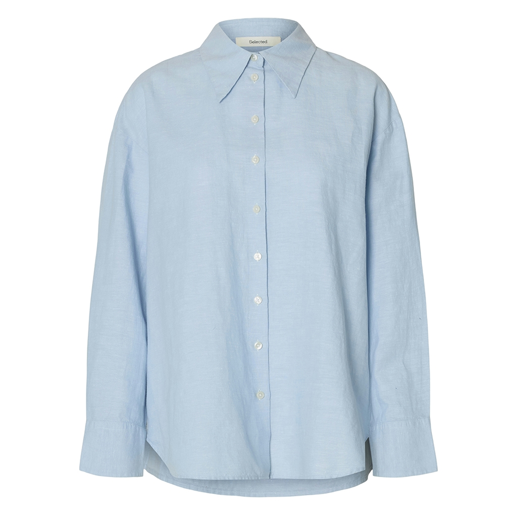 Ofte stillede spørgsmål om Selected Femme SlwCleo Oversize Linen Blend Shirt Dusty Blue/Mix w. White