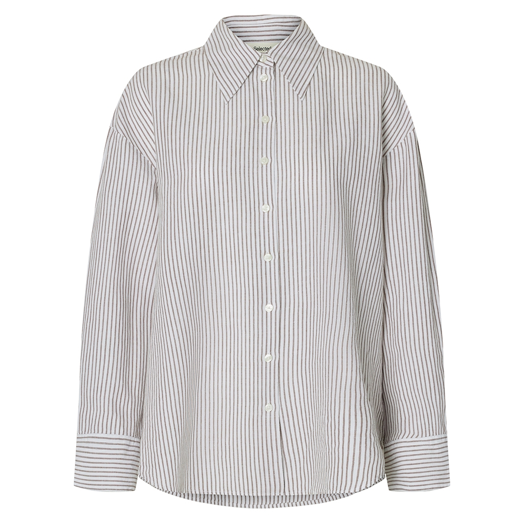 Ofte stillede spørgsmål om Selected Femme SlwCleo Oversize Linen Blend Shirt Bright White/Chocolate Chip