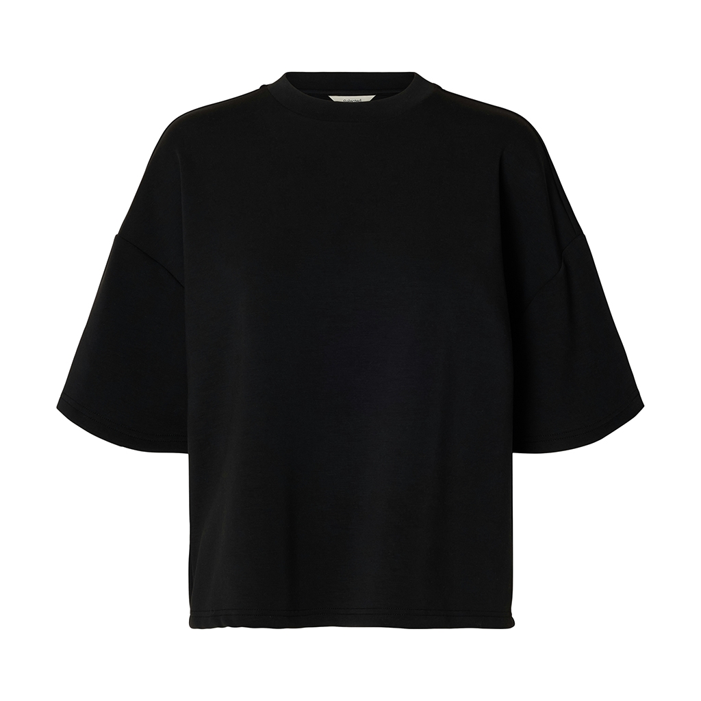 Opdag den stilfulde og komfortable 'Selected Femme SlwOversized Tenny Tee' i sort. Denne T-shirt er fremstillet af en højkvalitets blanding af 51% Modal TENCEL™, 45% polyester og 4% elastan, hvilket sikrer både holdbarhed og strækbarhed. Med en rund hals, korte ærmer og nedsænkede skuldre, tilbyder denne oversize tee en afslappet pasform, der er perfekt til både forårs- og sommermånederne. Ideel til hverdagsbrug, hvor komfort møder moderne æstetik. Vælg dette must-have item til din garderobe for et ubesværet chic look.