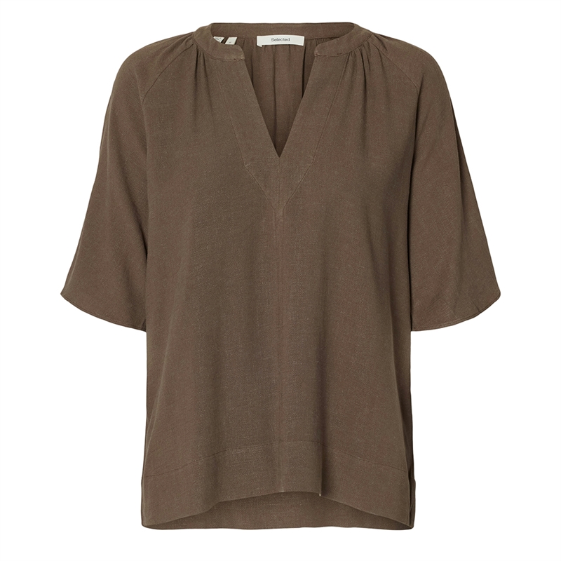 Selected Femme SlwViva 2/4 V-Neck Linen Blend Top Chocolate Chip