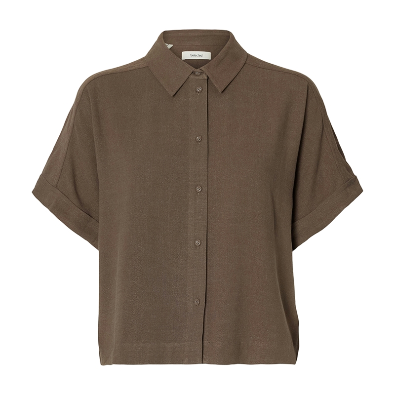 Selected Femme SlwViva SS Cropped Sun Shirt Chocolate Chip