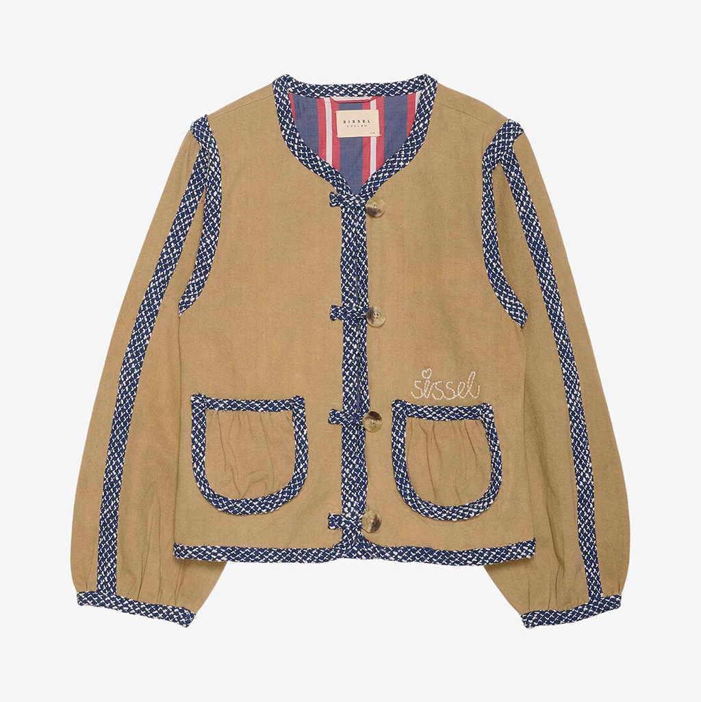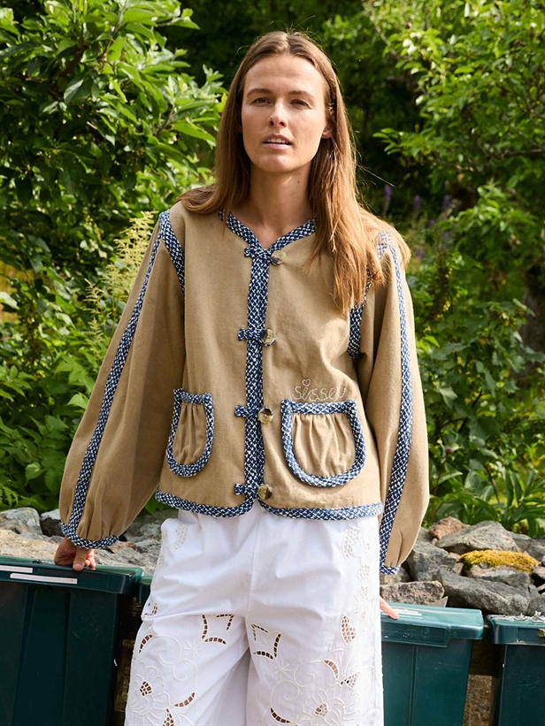 Oplev den elegante 'Sissel Edelbo Como Jacket Sand', en essentiel forår/sommer kollektion. Denne jakke kombinerer sofistikation med bæredygtighed, fremstillet af 100% økologisk bomuld. Designet er feminint med voluminøse, formsydde ærmer og en klassisk O-hals. Fremhævet med en fire-knaps stolpelukning og dekorative løkker, tilbyder jakken også praktiske forlommer med rynkedetaljer. Bouclé-kanter tilføjer en raffineret finish, mens en broderet "Sissel"-signatur pryder venstre lomme. Vælg denne jakke for både stil og miljøbevidsthed.
