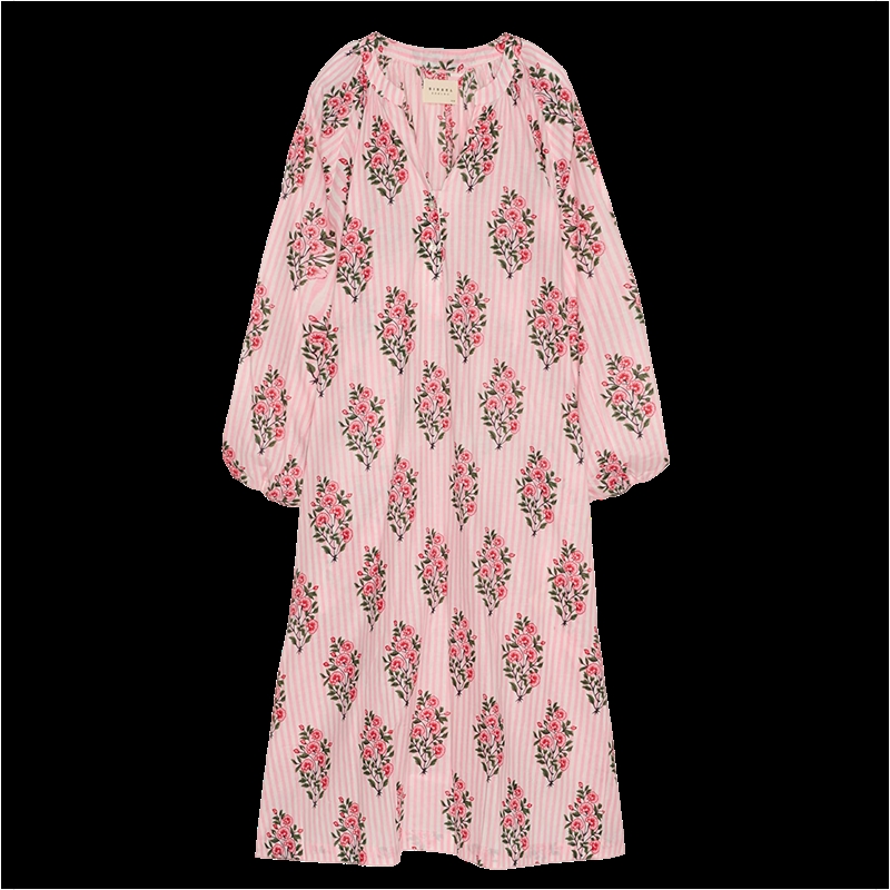Oplev den elegante 'Sissel Edelbo Lara Dress Blush Pink', designet med øje for bæredygtighed og feminin stil. Denne kjole er fremstillet i 100% økologisk bomuld og prydes af et unikt, håndlavet serigrafiprint, som giver hver kjole sit eget præg. Med en flatterende V-udskæring, frontslids med perlemorsknapper og luftige ballonærmer tilbyder denne kjole både komfort og stil. Den tilhørende bælte accentuerer taljen, mens den afslappede pasform sikrer bevægelsesfrihed. Perfekt til forårs- og sommergarderoben.