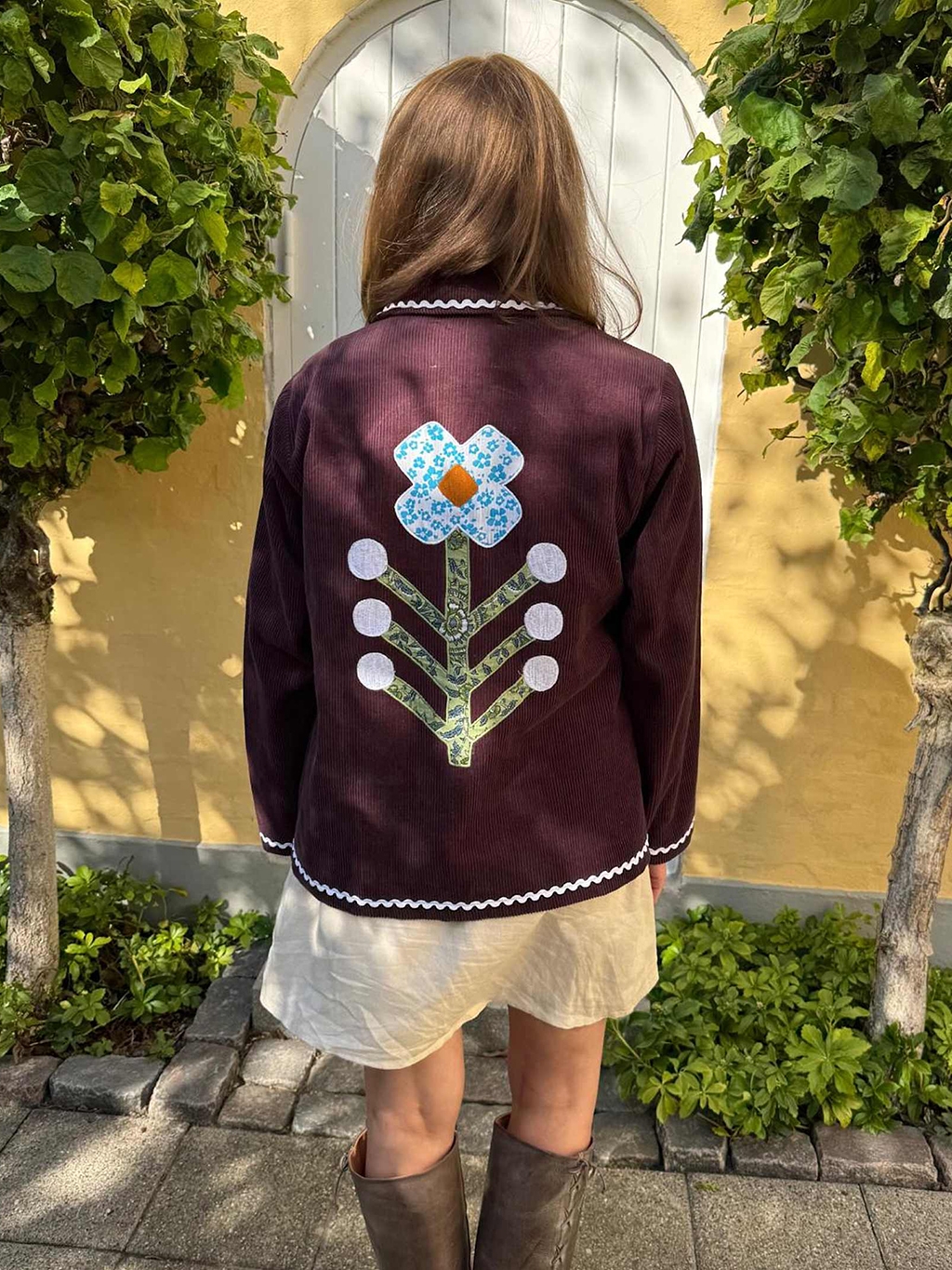 Opdag den elegante Sissel Edelbo Twiggy Jacket i farven Eggplant, et bæredygtigt valg fremstillet af genanvendte materialer. Denne jakke kombinerer stil og ansvarlighed med sit unikke blomsterbroderi håndpåført på lækker restfløjl. Med en afslappet pasform, lille skjortekrave og lange ærmer tilbyder den både komfort og stil. Jakken lukkes foran med knapper og er udstyret med praktiske lommer. Tilgængelig i størrelserne S/M og M/L, perfekt til efterår/vinter sæsonen.