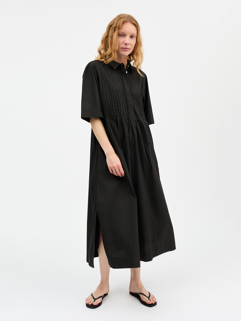 Opdag elegance og komfort med Skall Studio Dot shirtdress i sort. Denne midikjole kombinerer en afslappet og voluminøs silhuet med en klassisk skjortekrave, perfekt til både hverdag og særlige anledninger. Fremstillet af 100% økologisk bomuld, garanterer den ikke kun blødhed og åndbarhed, men understøtter også bæredygtige fremstillingspraksisser. Farven sort tilføjer et tidløst touch, mens det løse fit sikrer optimal komfort. Ideel for den modebevidste kvinde, der værdsætter stil og miljøansvarlighed. Vælg ansvarligt – vælg Skall Studio.
