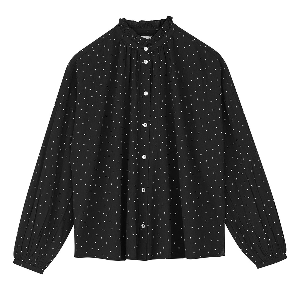 Oplev tidløs elegance med Skall Studio Hannah Shirt i sort/hvid prik. Denne skjorte er fremstillet af 100% økologisk bomuld, hvilket sikrer et ansvarligt og bæredygtigt valg. Designet til efterår/vinter kollektionen, tilbyder denne skjorte en komfortabel regular fit pasform, ideel til både formelle og afslappede lejligheder. Med sin klassiske farvekombination og højkvalitets materiale, er Hannah skjorten et must-have i enhver garderobe, der værdsætter økologi og stil. Tag et bæredygtigt valg med Skall Studio og tilføj elegance til din daglige påklædning.