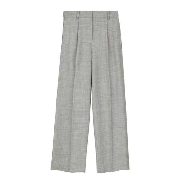 Opdag elegance og komfort med 'Skall Studio Thom trousers' i farven lys grå mélange. Disse bukser er fremstillet af 100% ren uld, hvilket sikrer en premium følelse og varme gennem efterår og vinter sæsonen. Designet med en regular fit pasform, tilbyder de en tidløs silhuet, der kan styles både op og ned afhængig af anledningen. Perfekt for den modebevidste kvinde, der værdsætter kvalitet og stil. Tilføj et strejf af minimalistisk skandinavisk design til din garderobe med disse eksklusive uldbukser fra Skall Studio.